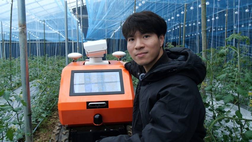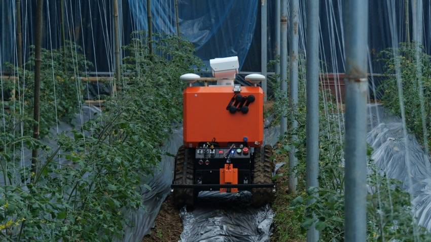这辆集自动驾驶与AI识别于一身的“小铁甲”,是今年新研发的机器人,搭载着高精度导航系统,在错综复杂的作物行间距中灵活转向,遇到灌溉管道、田间支架等障碍物时,瞬间完成动态避障调整,稳稳驶向既定巡检点。