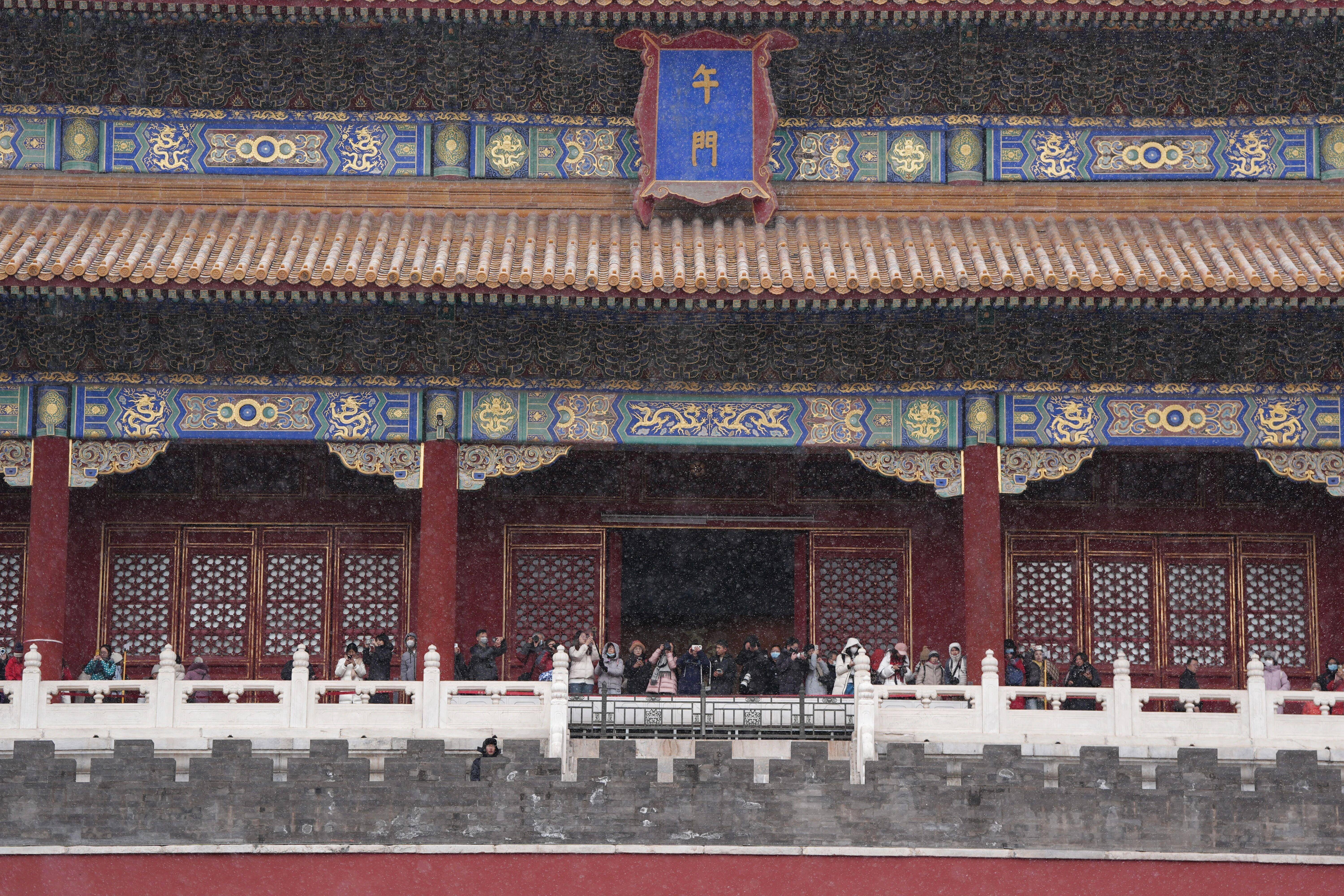 12月12日,游客冒雪参观北京故宫。新华社记者 李鑫 摄