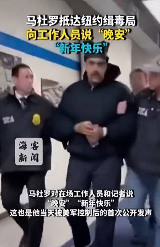 据人民日报海客新闻综合美国CBS电视台、今日俄罗斯新闻网报道,当地时间1月3日委内瑞拉总统马杜罗被送至纽约缉毒局,马杜罗对在场工作人员和记者说“晚安”“新年快乐”,这也是他当天被美军控制后的首次公开发声。